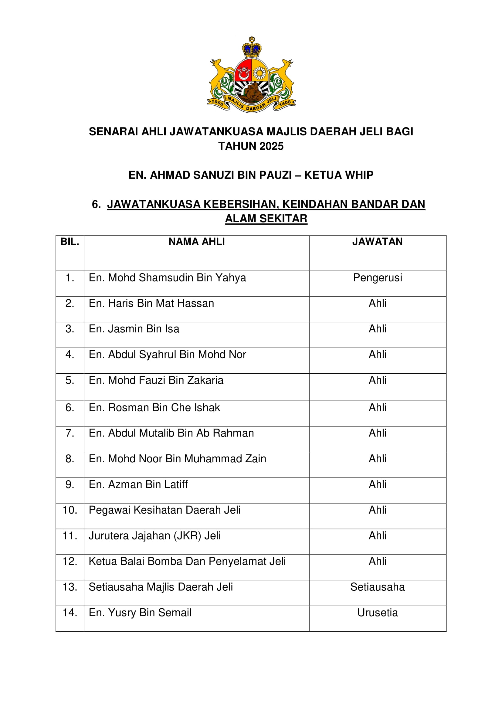 JAWATANKUASA KEBERSIHAN, KEINDAHAN BANDAR DAN ALAM SEKITAR
