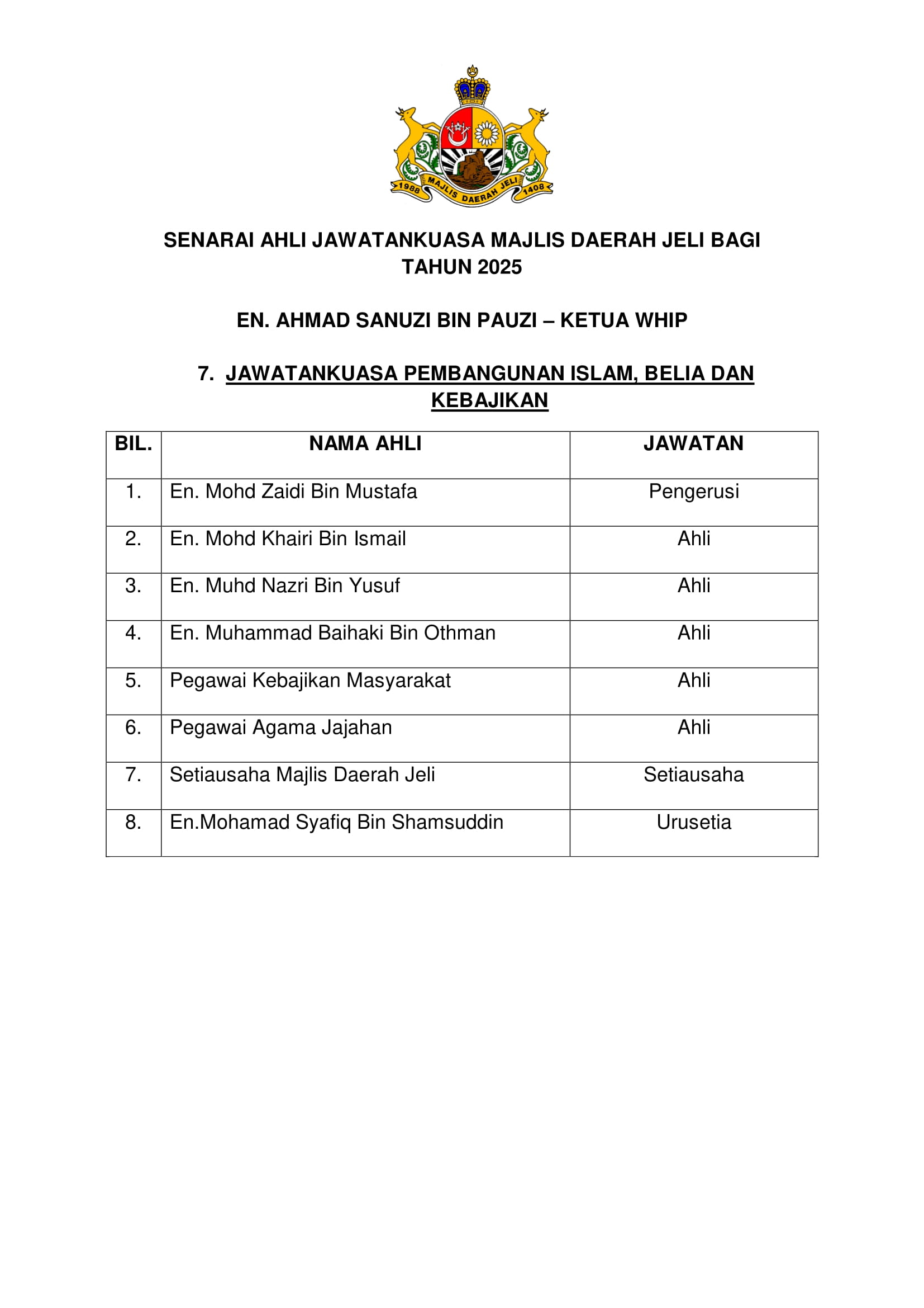 JAWATANKUASA PEMBANGUNAN ISLAM, BELIA DAN KEBAJIKAN