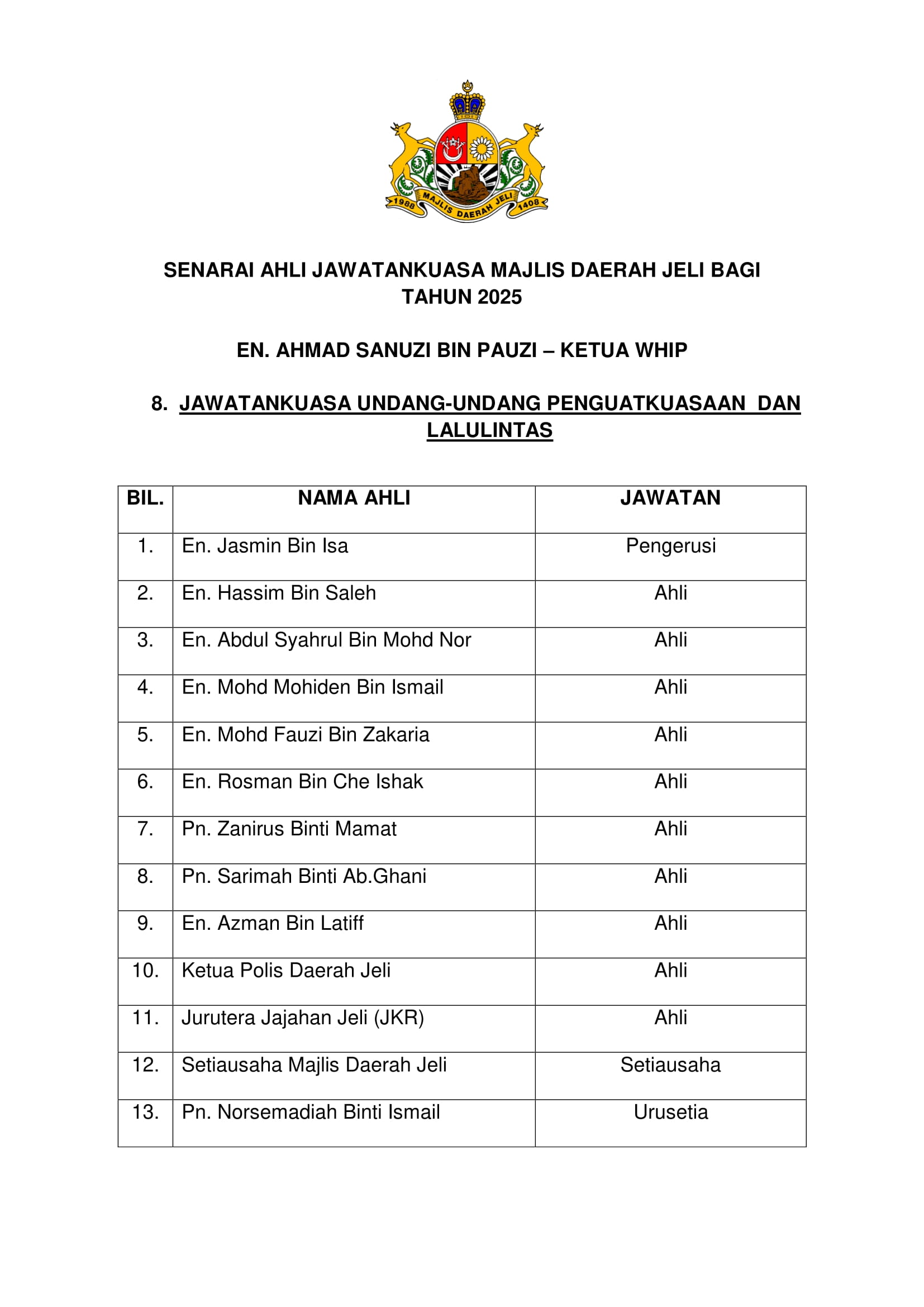 JAWATANKUASA UNDANG - UNDANG DAN LALULINTAS