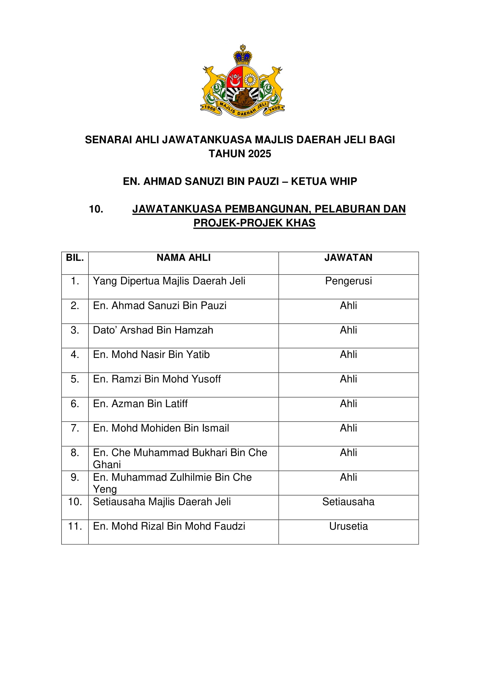 JAWATANKUASA PEMBANGUNAN, PELABURAN DAN PROJEK - PROJEK KHAS