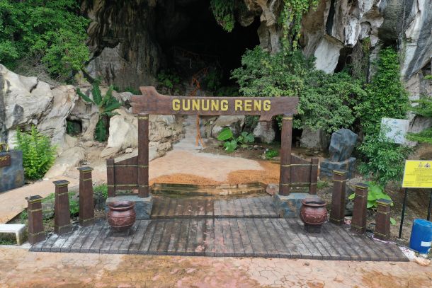 - Terdapat beberapa gua di dalam gunung ini seperti Gua Payong, Gua Bedak, Gua Kaca, Gua Rimau dan Gua Batak. Gua-gua ini berbentuk bilik-bilik kecil dan dikatakan pernah menjadi tempat tinggal Puteri Sa’adong serta hulubalangnya. Melalui Gua Payong, pengunjung dapat menjelajahi Lorong-lorong dalam gua menuju ke bilik-bilik dan anjung hingga ke puncak Gunung Reng.